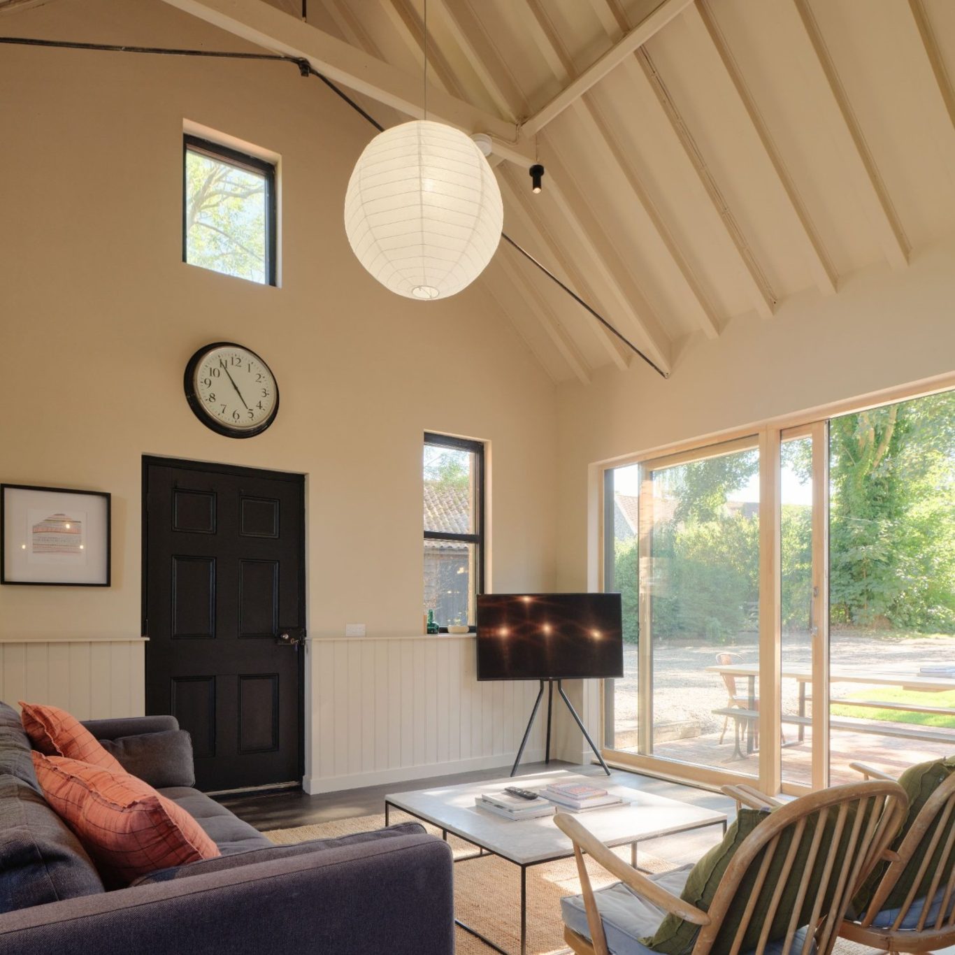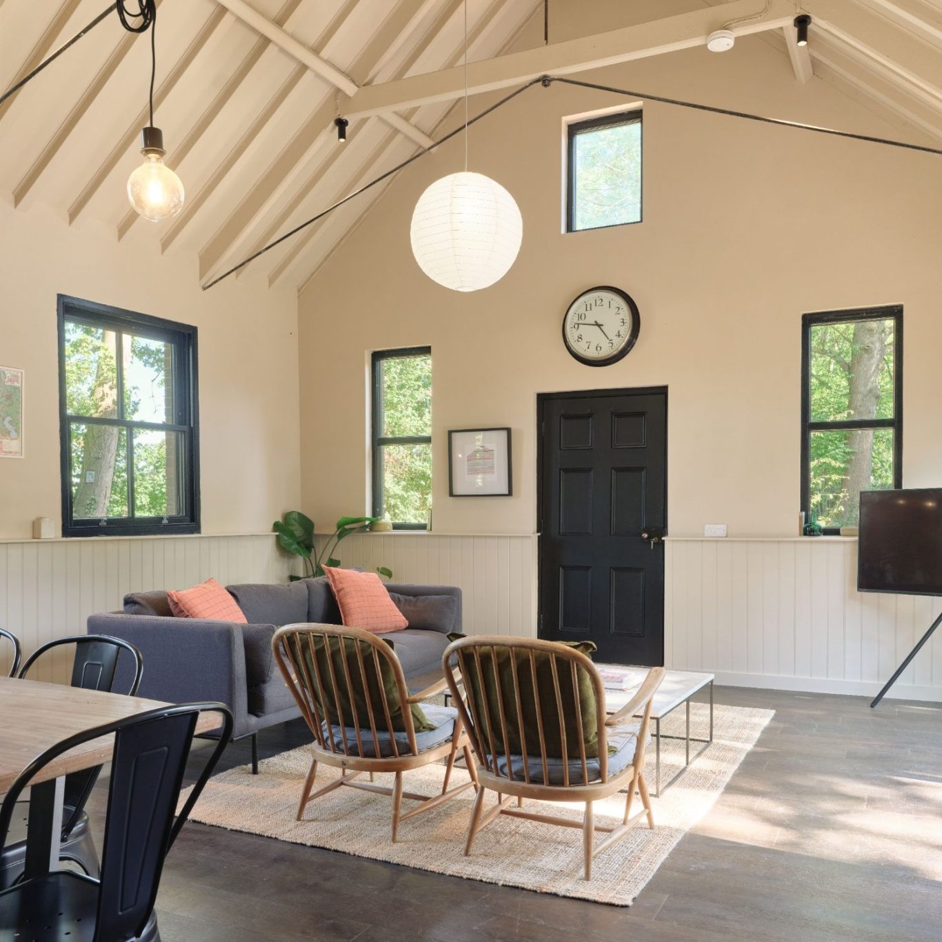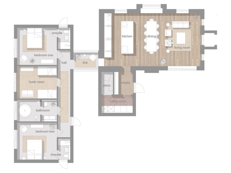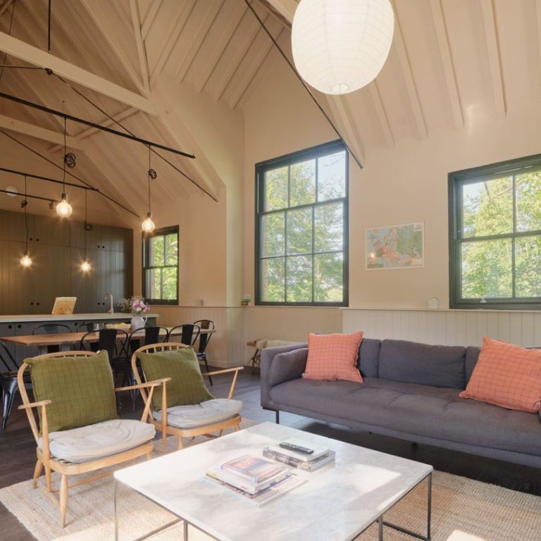 This stunning retreat features two beautifully appointed kingsize double ensuite bedrooms and a large, fun-filled bunk room, sleeping four. The centerpiece of the home is its impressive double-height living area where the history of the Church Hall meets modern design in an open-plan space for living, dining, and cooking.
